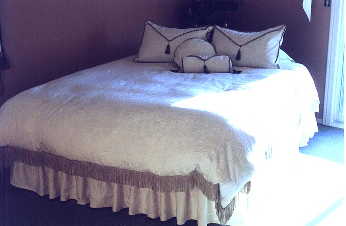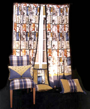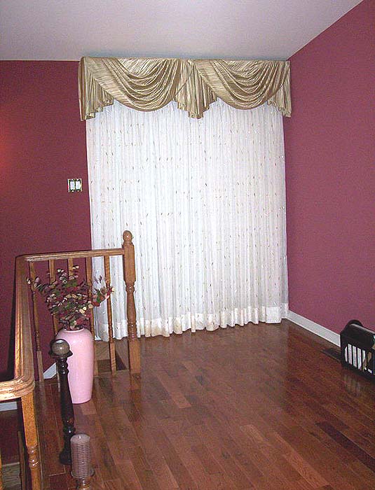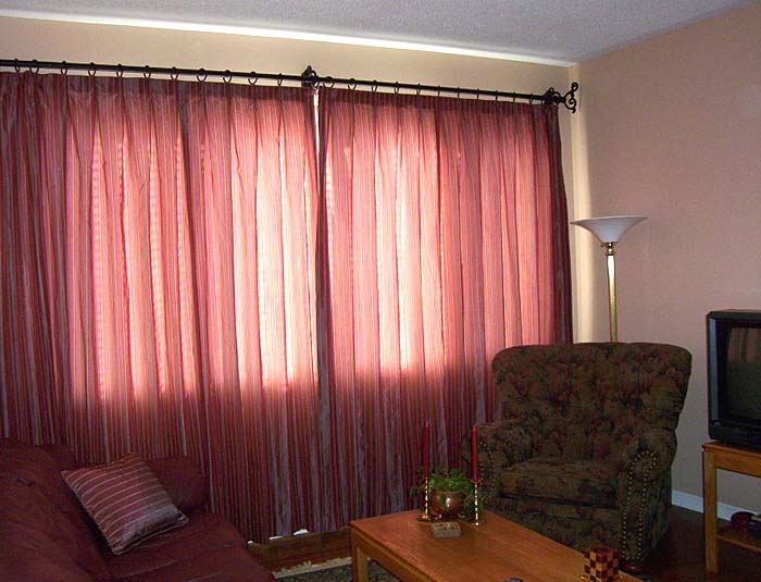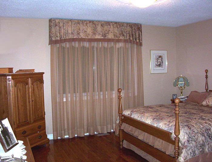 We offer custom draperies, top treatments of every kind, made on site in our professional workroom. We use exclusive up-to-date quality fabrics from Canada, the USA and Europe. Available fabrics are far too numerous to mention on this web site because they are continuously changing so we invite you to visit our showroom where we can provide swatches and work with you to find the perfect treatment for your décor.